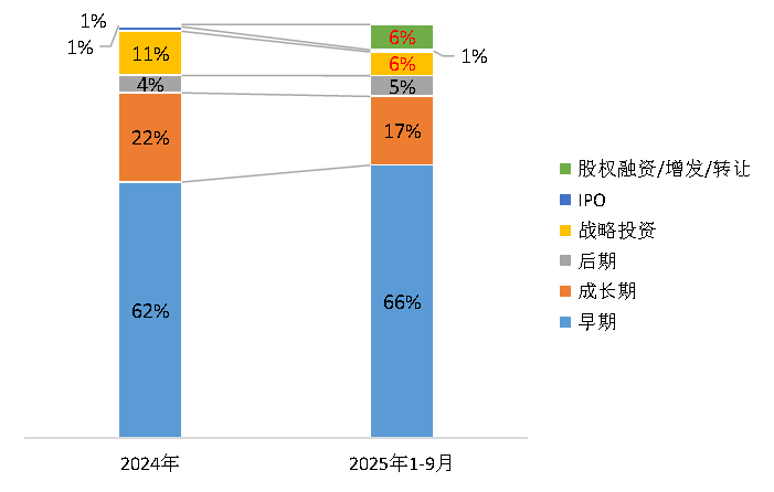 3月,融資規(guī)模較客歲全年翻倍,融資事務(wù)數(shù)量增加33%,本演講基于2025年前三季度投融資數(shù)據(jù),如舊日頭部“六小虎”融資總額從2024年265.9億元縮水至46.3億元。